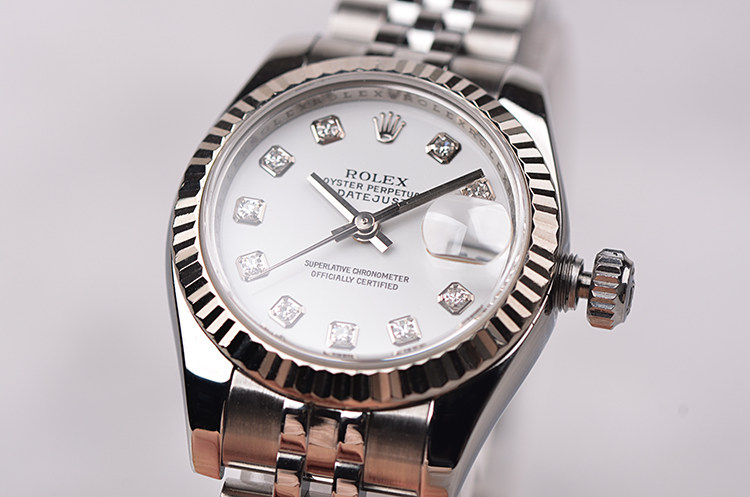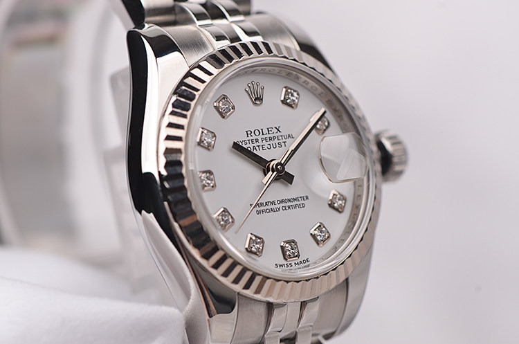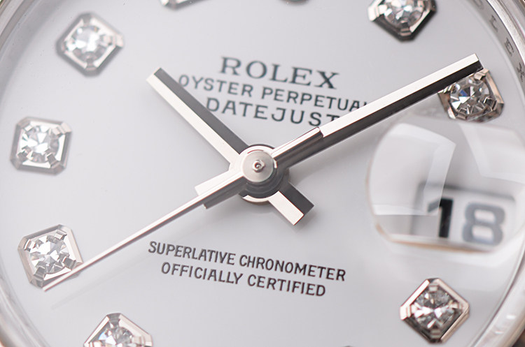 表盘:立体白色表盘,10颗原厂钻石时标