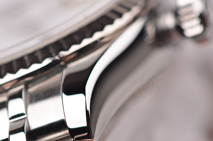 表壳:904L精钢表壳,白金三角坑纹表圈