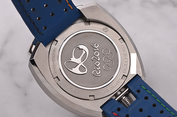表壳:精钢“牛头”外形表壳,里约2016奥运会限量版底盖