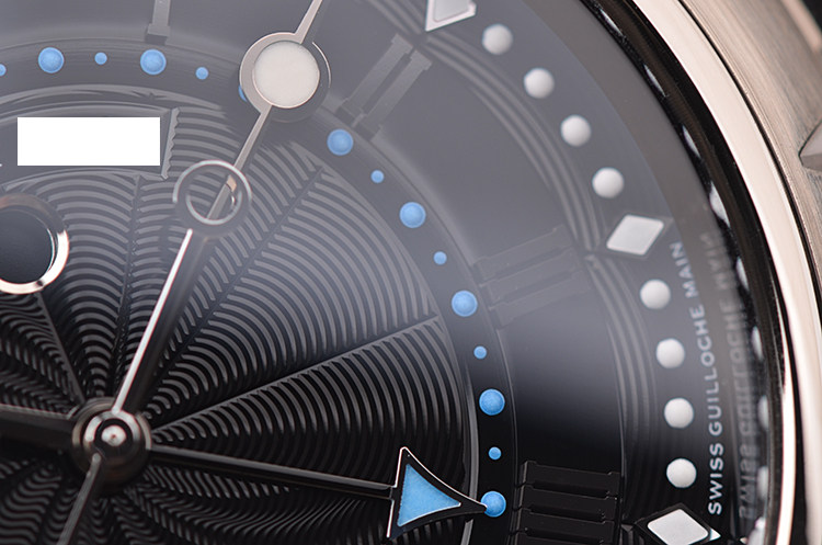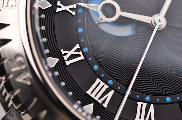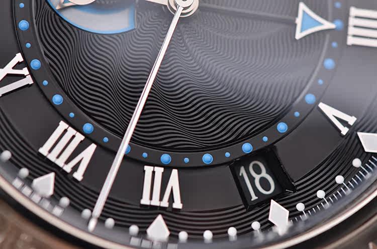 表盘:立体黑色波浪纹表盘,动力储备显示,闹铃开关,日历显示