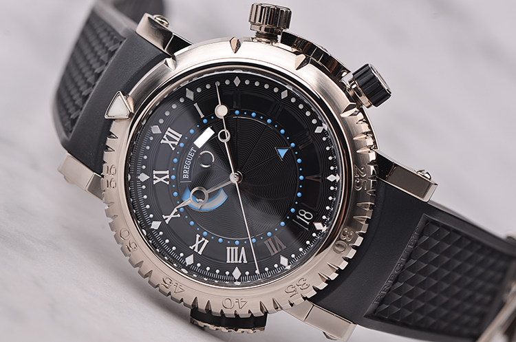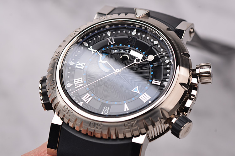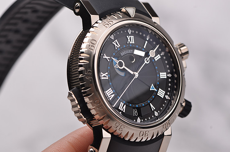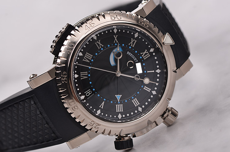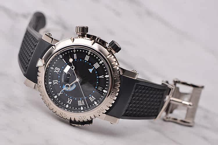 航海系列白金动显闹铃自动机械折叠扣胶带男表