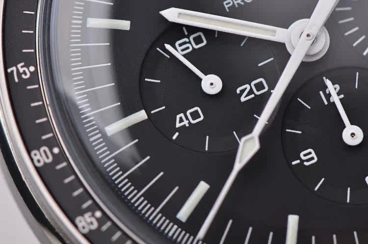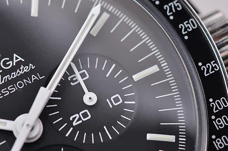 表盘:黑色计时表盘,夜光刻度及时分针