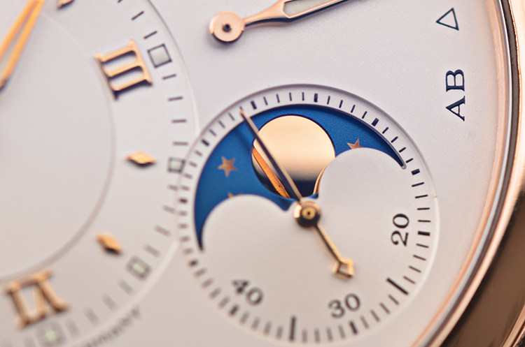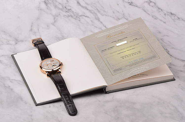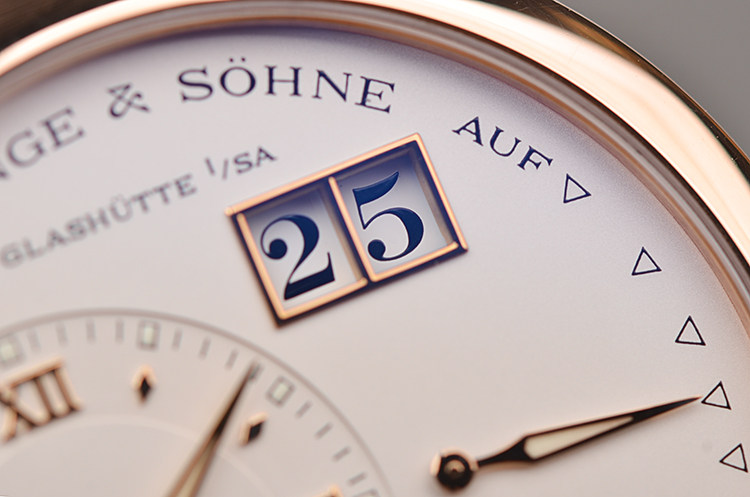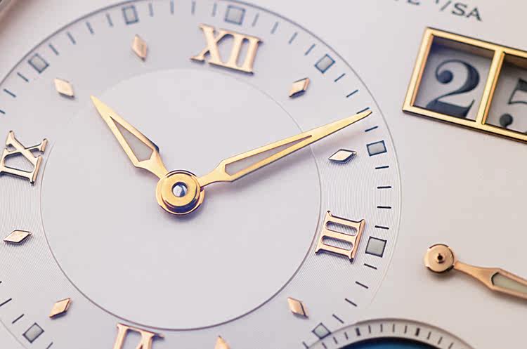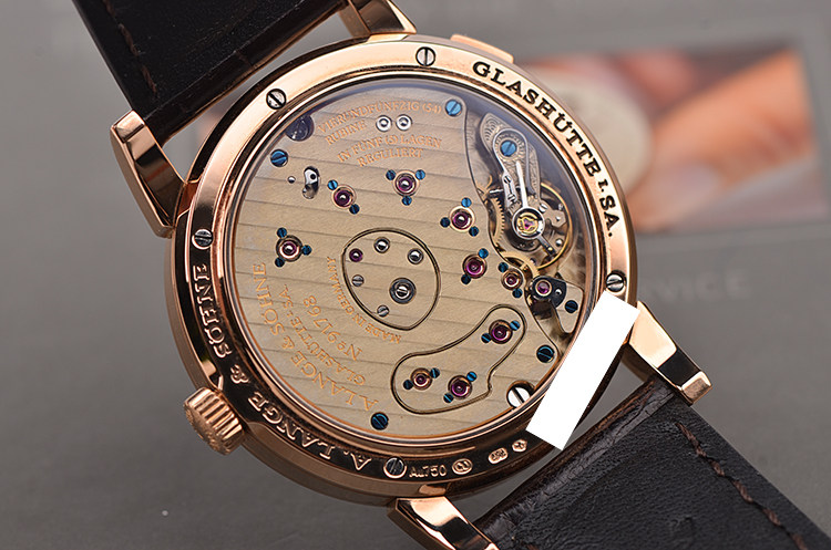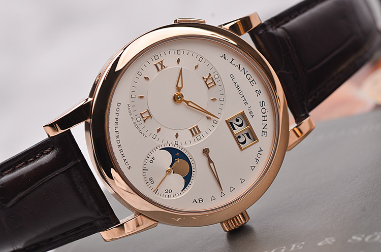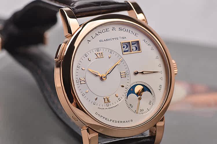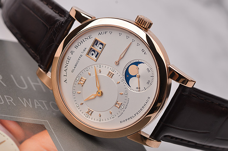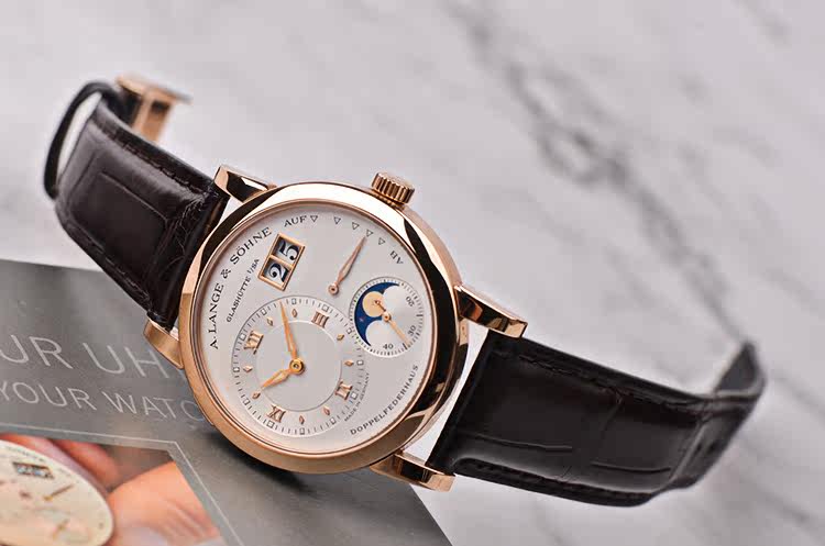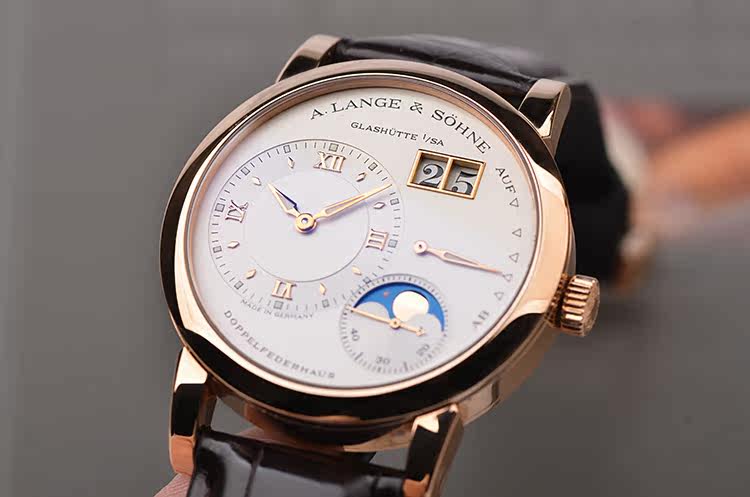 朗格1系列玫瑰金38.5MM偏心大日历动显月相手上链男表