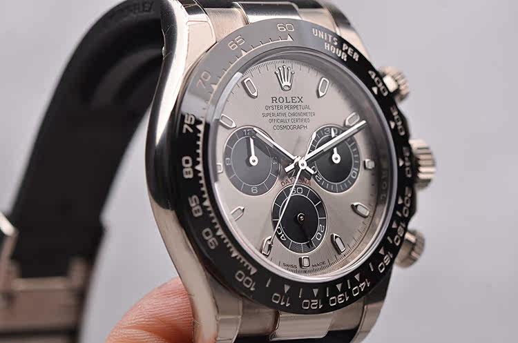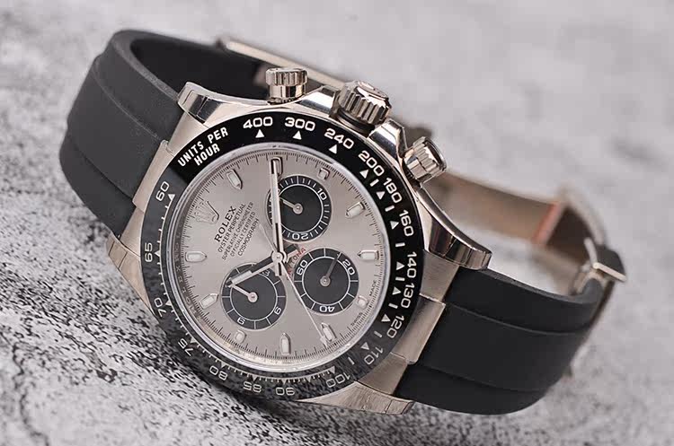 迪通拿白金灰面陶瓷圈计时自动机械折叠扣男表