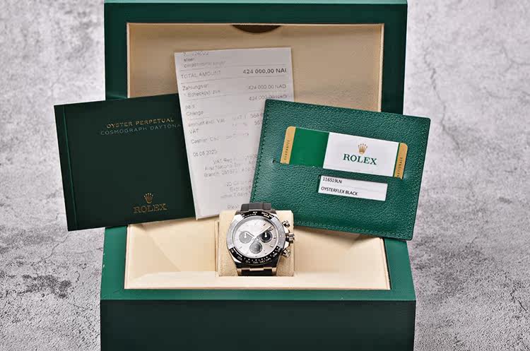附件:原装表盒,吊牌,皮卡套,表圈保护套,说明书,服务手册,保修卡(2020年6月,可以保修至2028年6月),整表重约159克