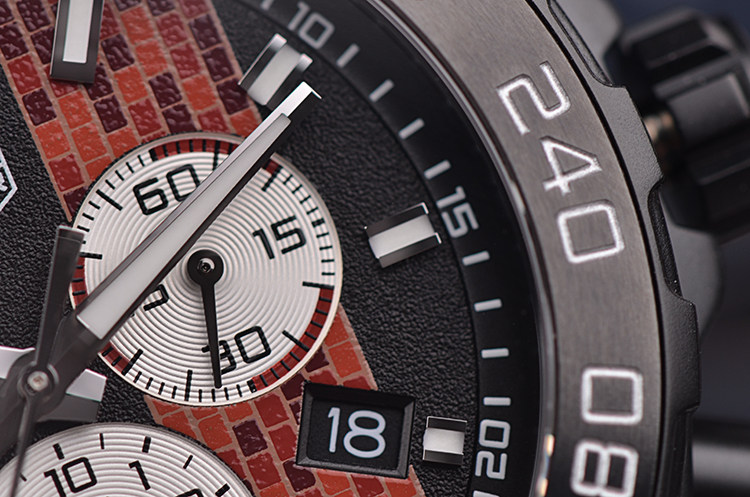 表盘:立体黑色计时表盘,固定测速表圈,日历显示,夜光刻度及时分针