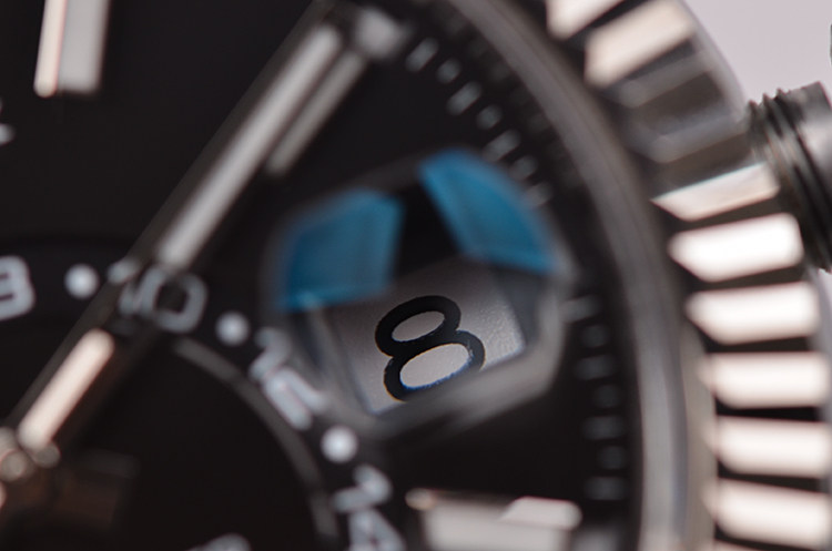 表盘:立体黑色表盘,年历及两地时显示