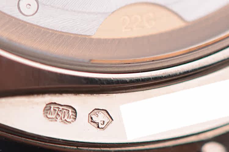 机芯:自动机械 CAL.868 型机芯,万年历及月相功能,22K金边配重自动陀