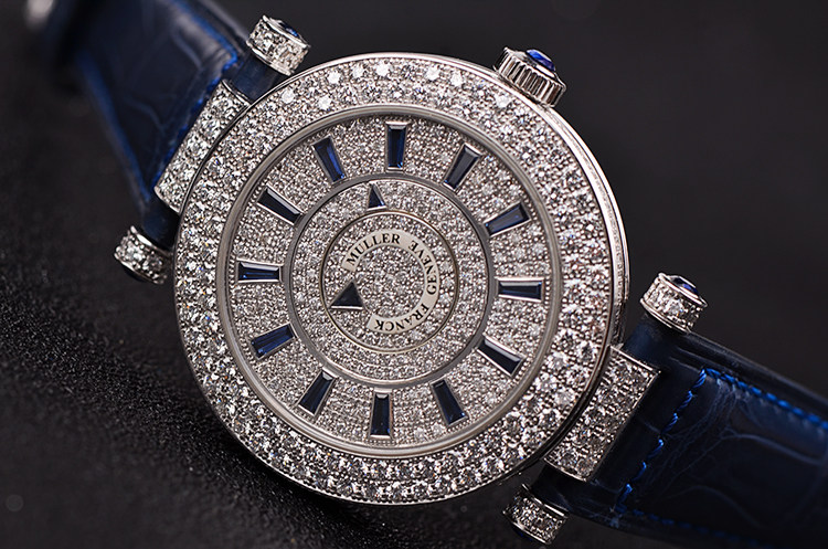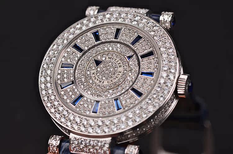 表盘:立体满天星原镶钻面盘,蓝宝石时标及时分针