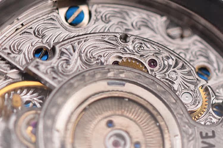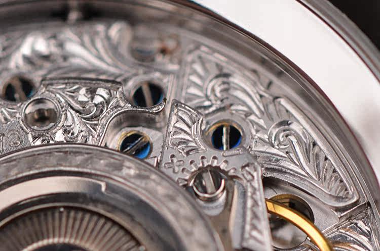 机芯:自动机械CAL.2800,PT950雕花自动陀,雕花机芯夹板,动力储备约42小时