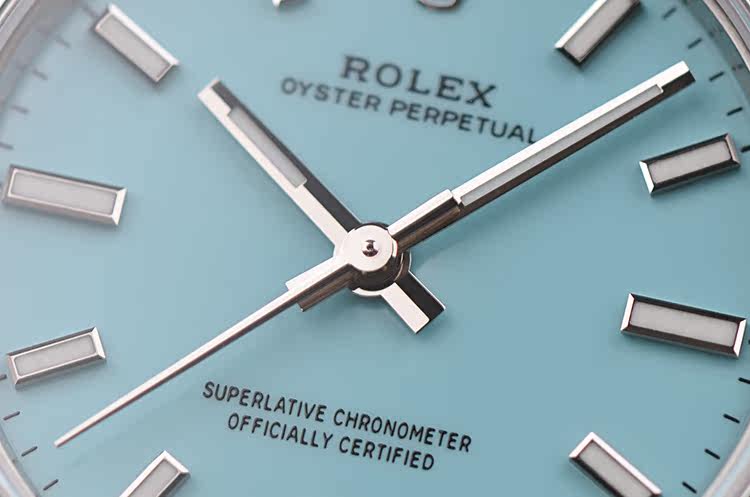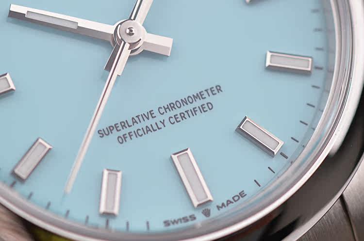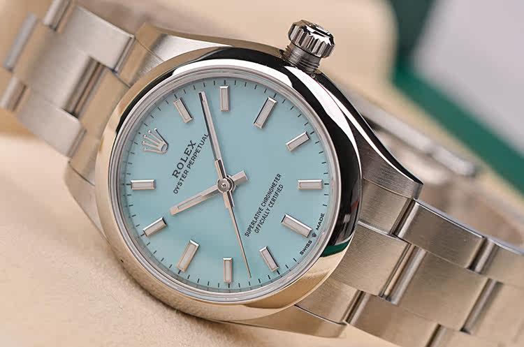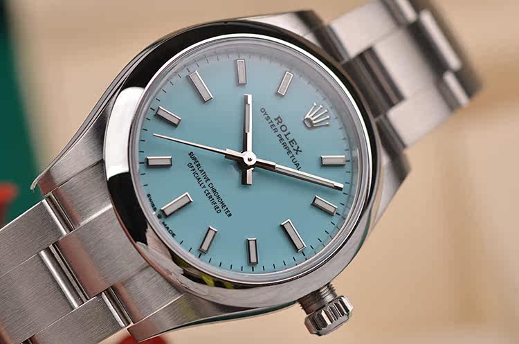 最新款蚝式恒动绿松石蓝面大三针31MM自动机械钢带女表