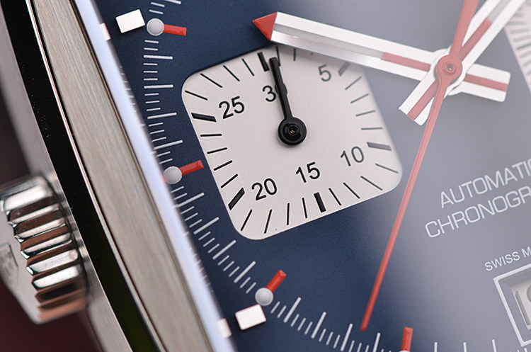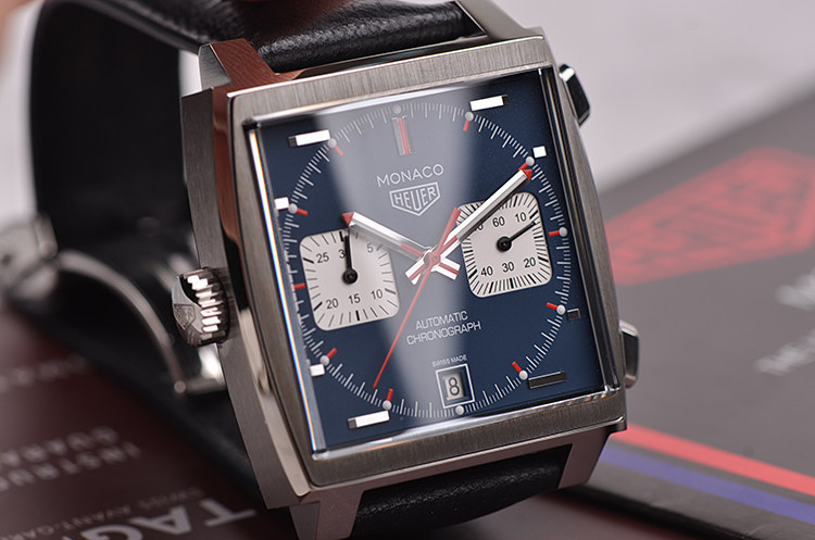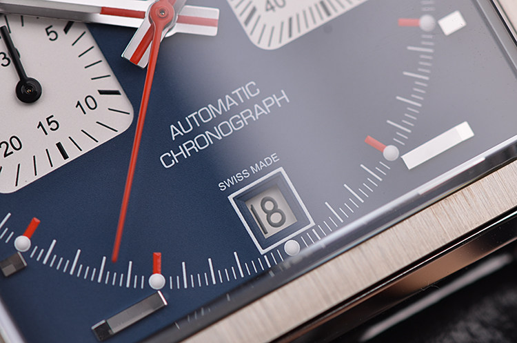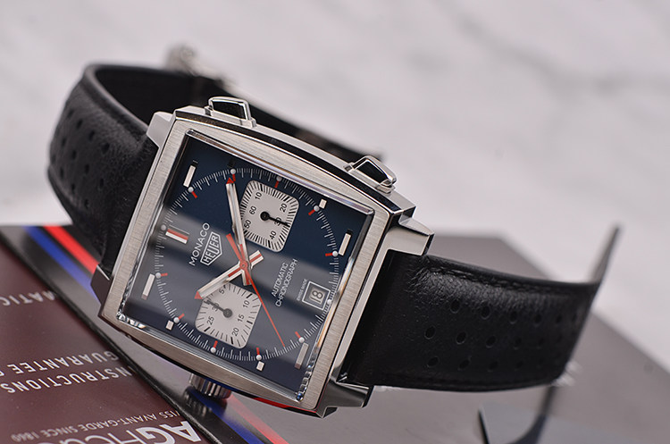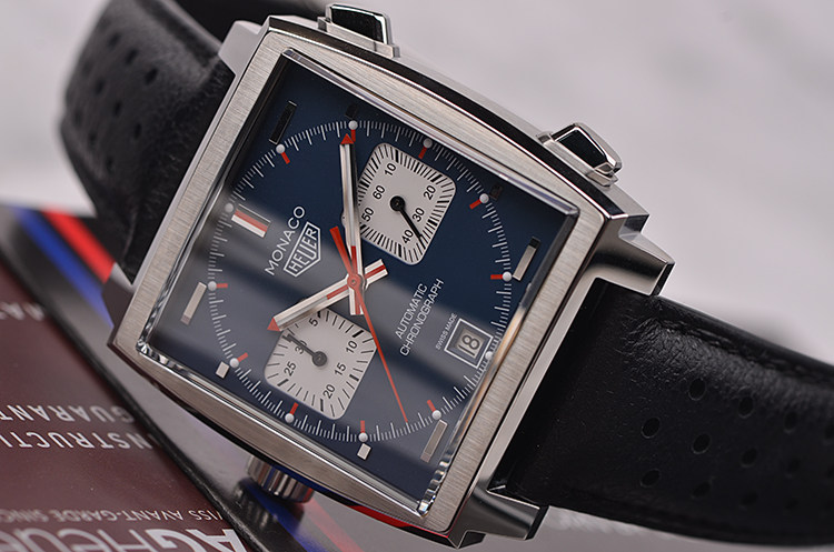 摩纳哥系列方形左撇子蓝面计时日历自动机械皮带男表