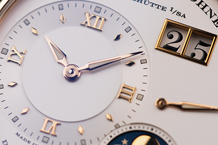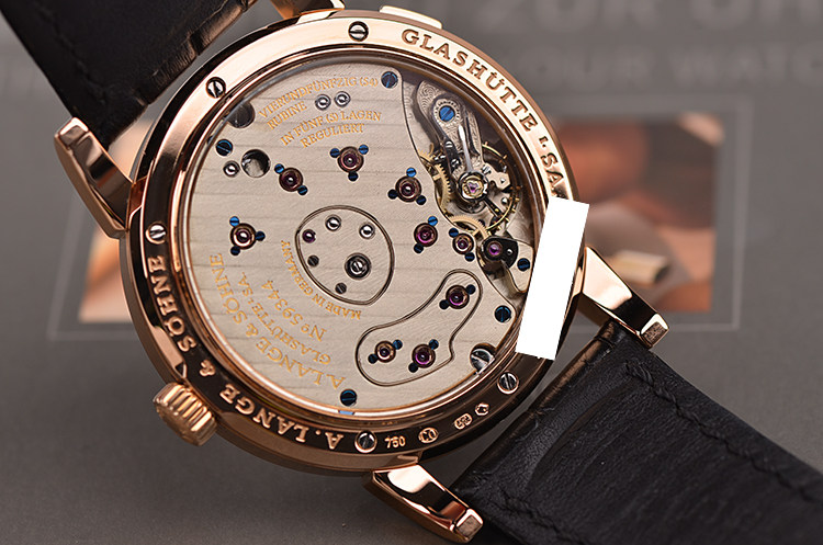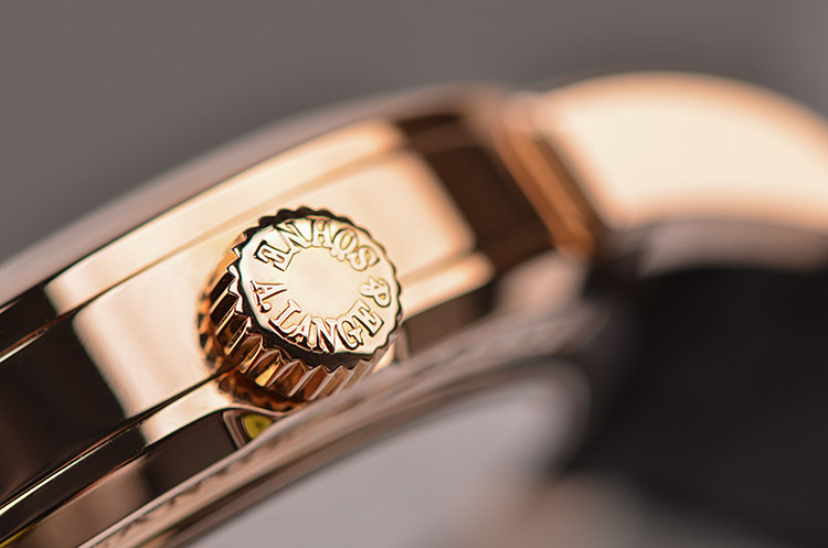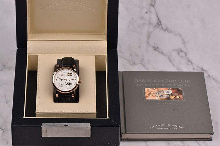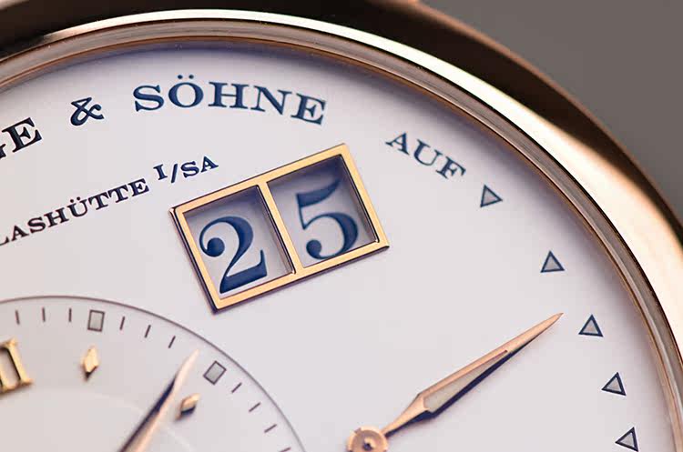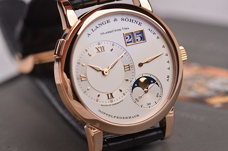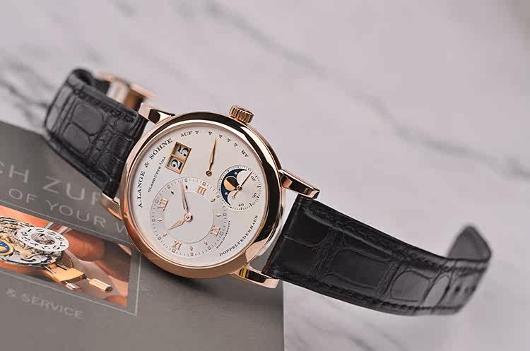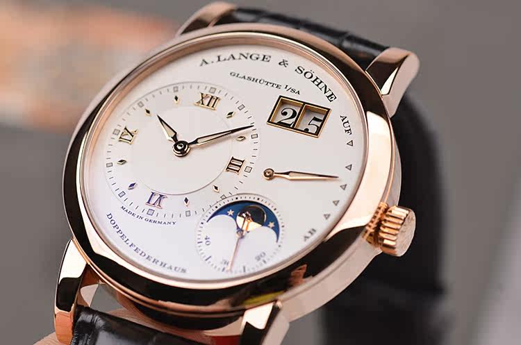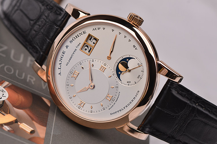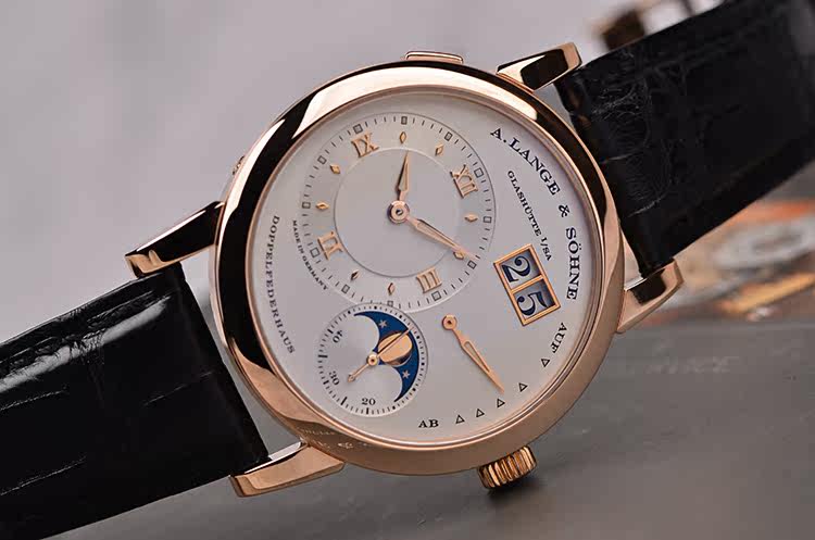 朗格1系列玫瑰金38.5MM偏心大日历动显月相手上链男表