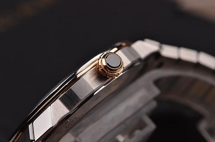 表壳:18K玫瑰金及钢八角形表壳,18K玫瑰金镶嵌陶瓷表冠