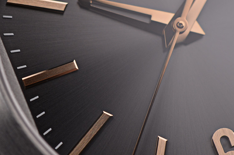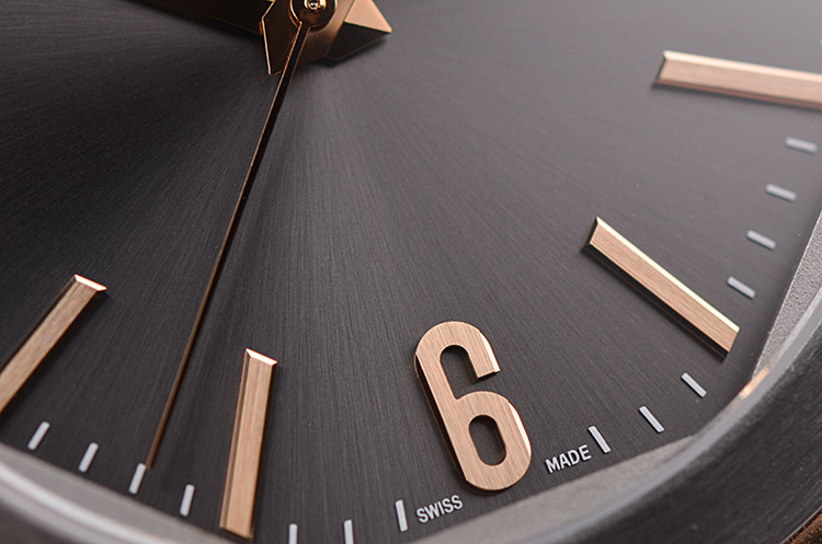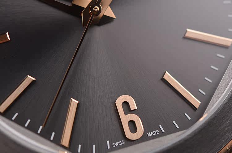 表盘:立体灰色表盘,玫瑰金刻度及指针