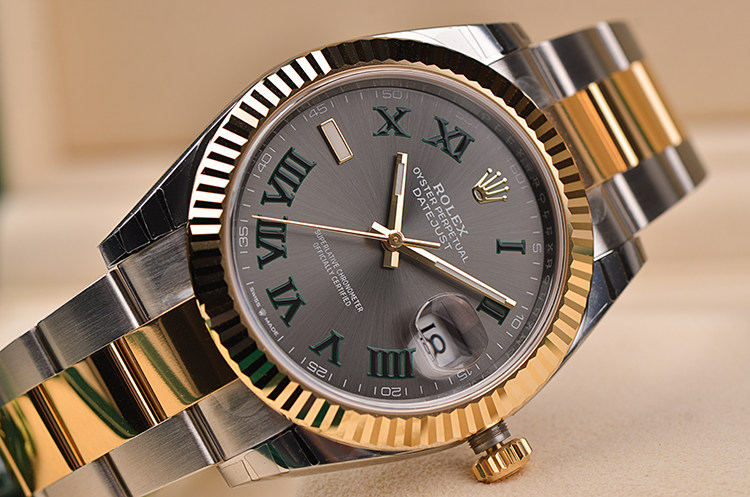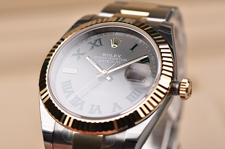 新款日志型黄金及钢灰面绿罗马刻度41MM自动机械男表