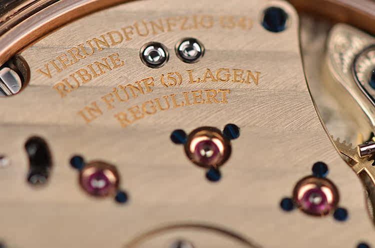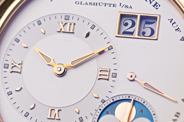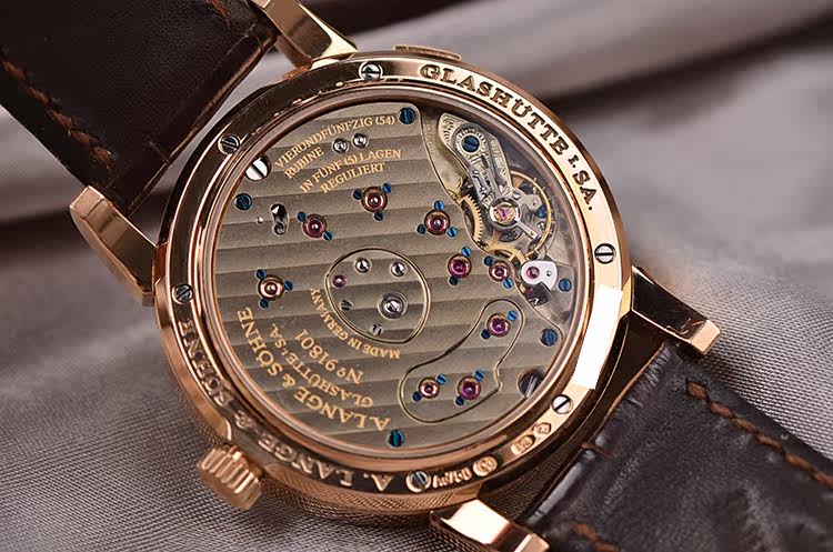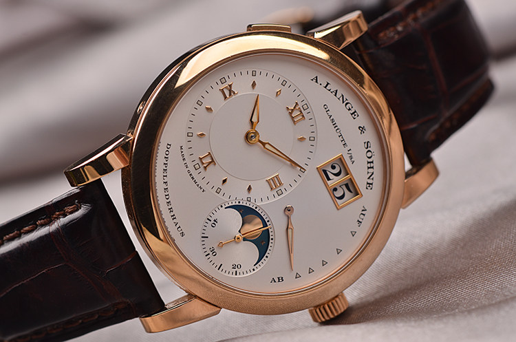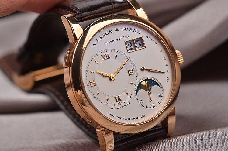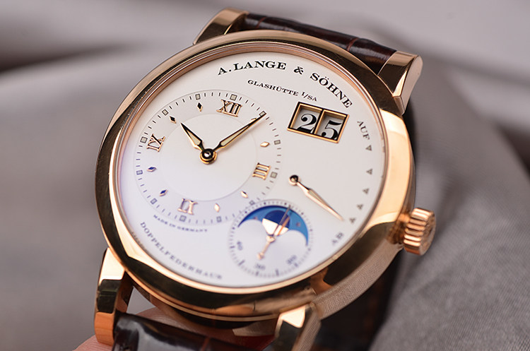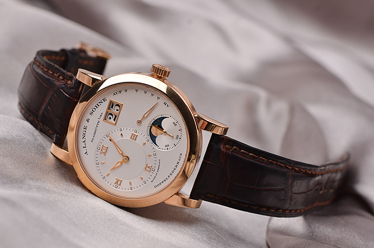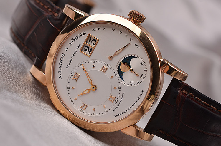 朗格1系列玫瑰金38.5MM偏心大日历动显月相手上链男表