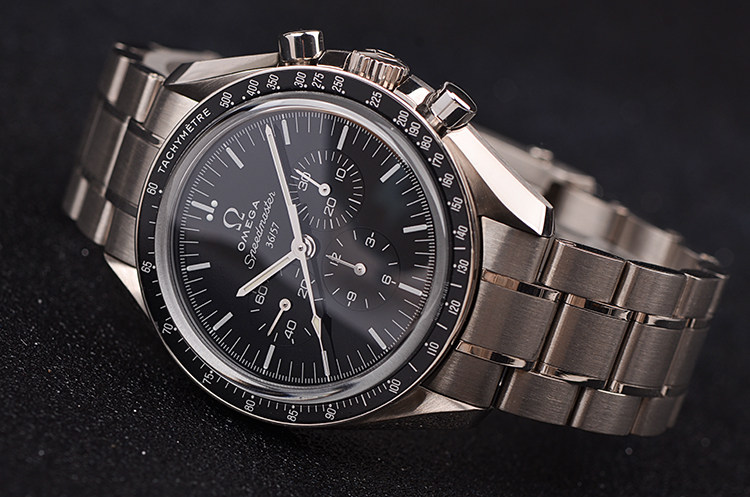 超霸登月系列50周年限量版全白金黑珐琅盘计时手上链男表