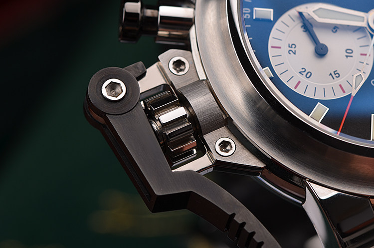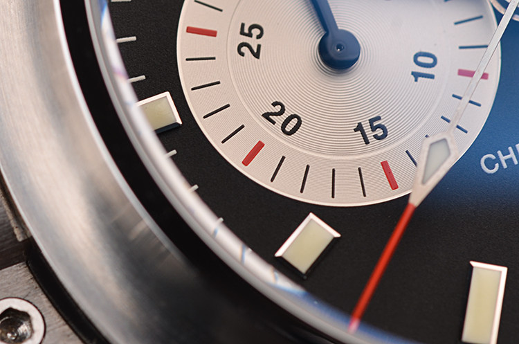 表壳:精钢表壳,PVD钢计时按钮,左撇子设计