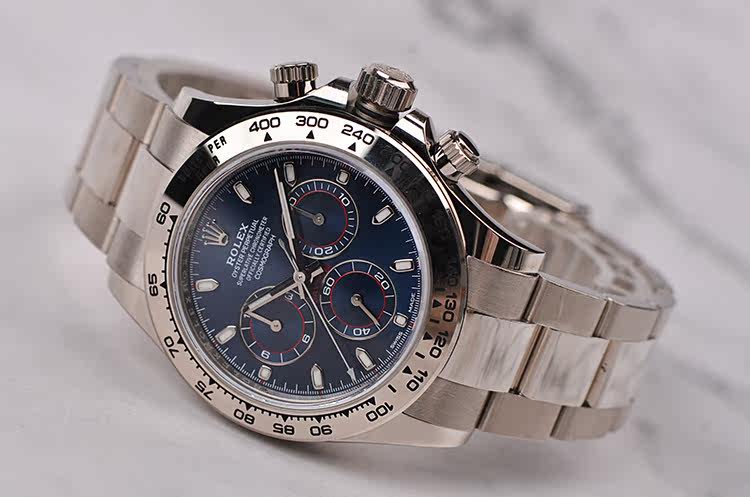 表盘:立体蓝色计时表盘,白金夜光刻度及指针