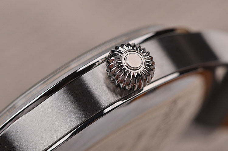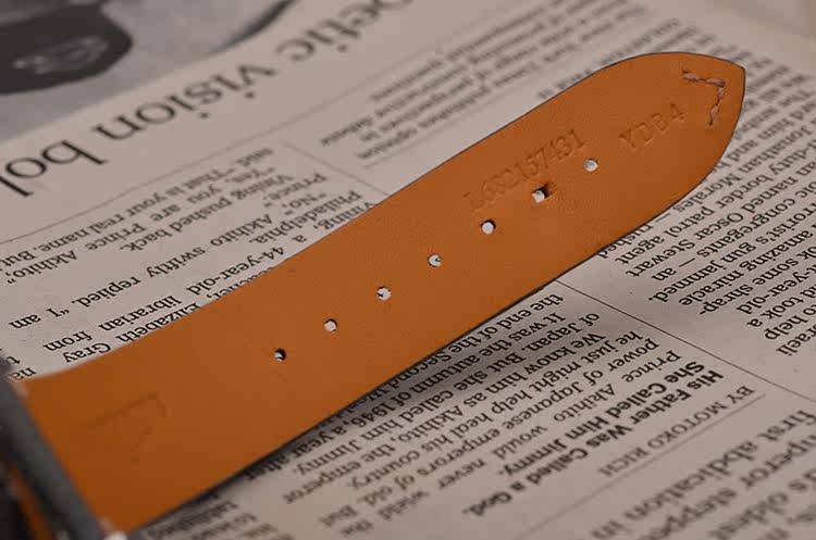 表带:全新原厂深灰色复古小牛皮表带,另有一条全新原厂棕色小牛皮表带及原装表扣,共计2条原装表带,2个原装表扣