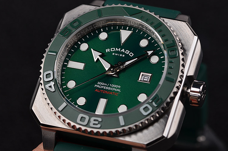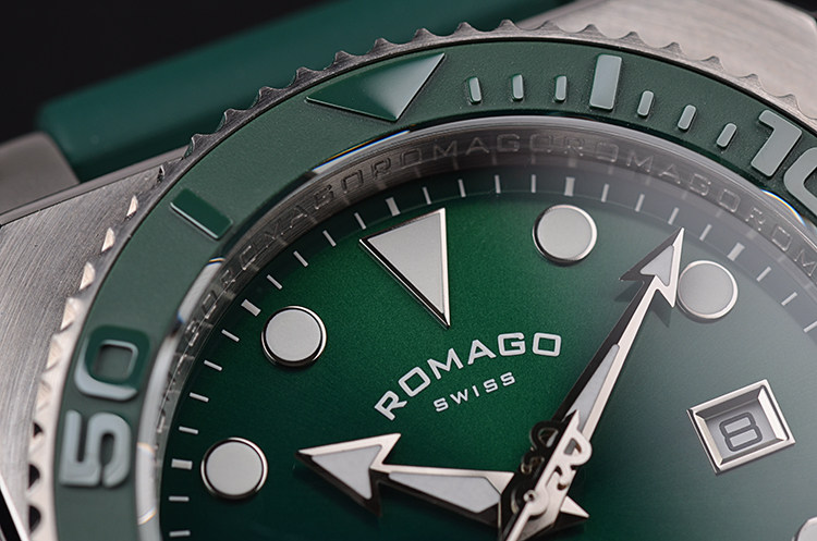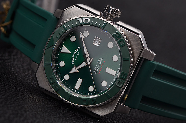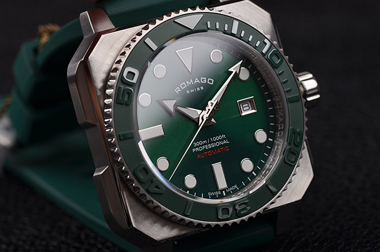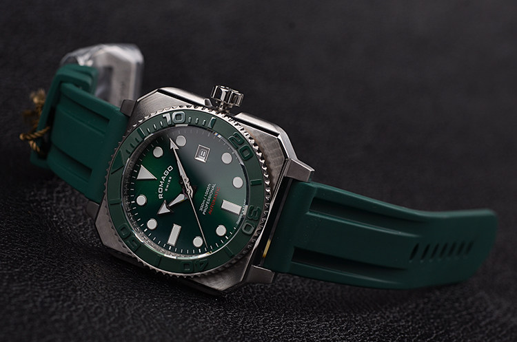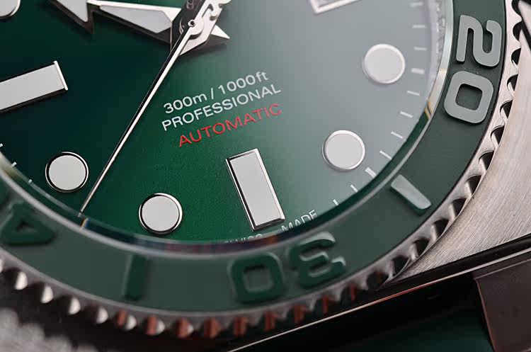 表壳:精钢表壳,绿色陶瓷单向旋转计时表圈