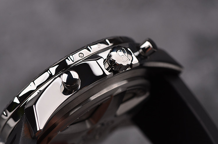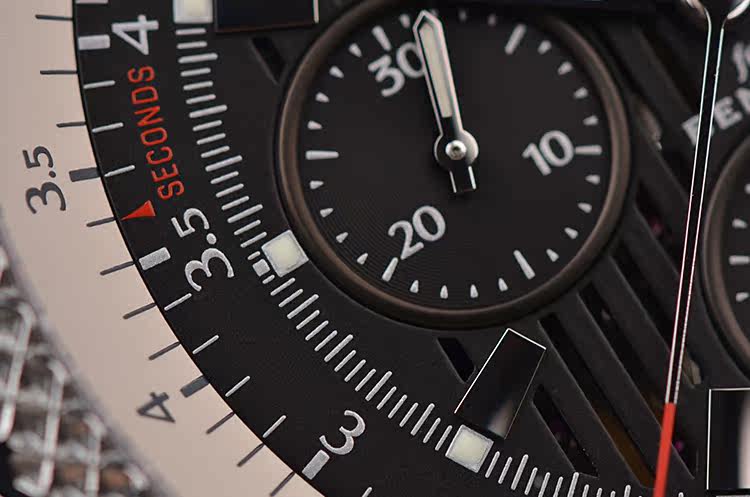 表盘:立体黑色镂空计时表盘,大日历窗口
