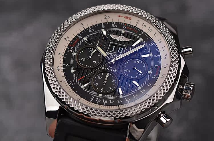 宾利6.75大日历计时48.7MM自动机械胶带男表
