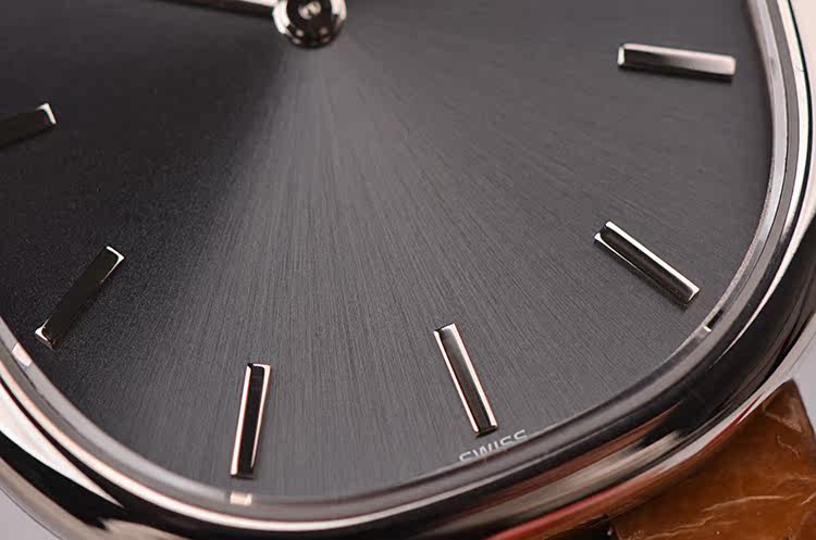 表盘:立体深灰色日辉纹表盘,白金刻度及指针