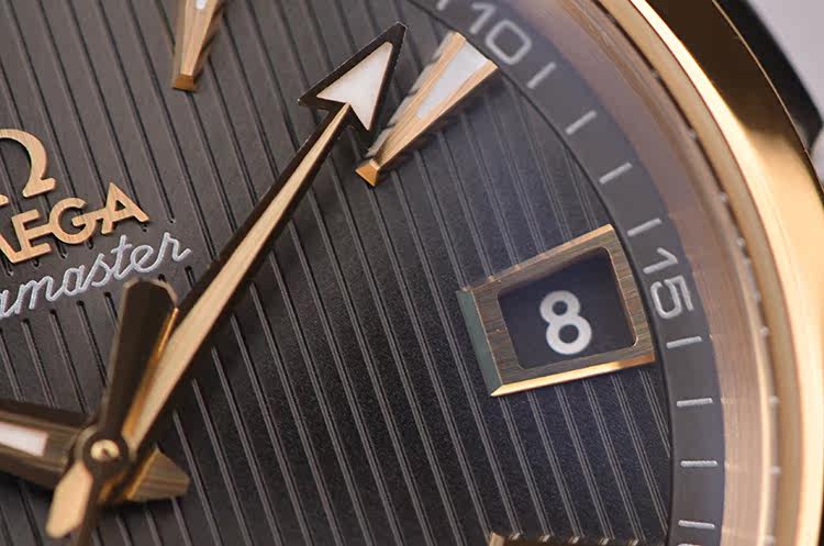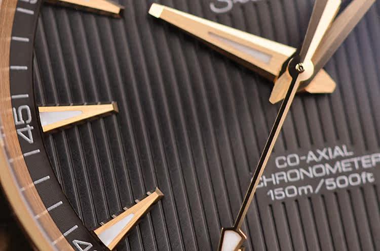 表盘:深灰色“柚木条纹”表盘,黄金夜光刻度及指针