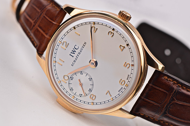 葡萄牙系列限量版玫瑰金三问报时手上链皮带男表
