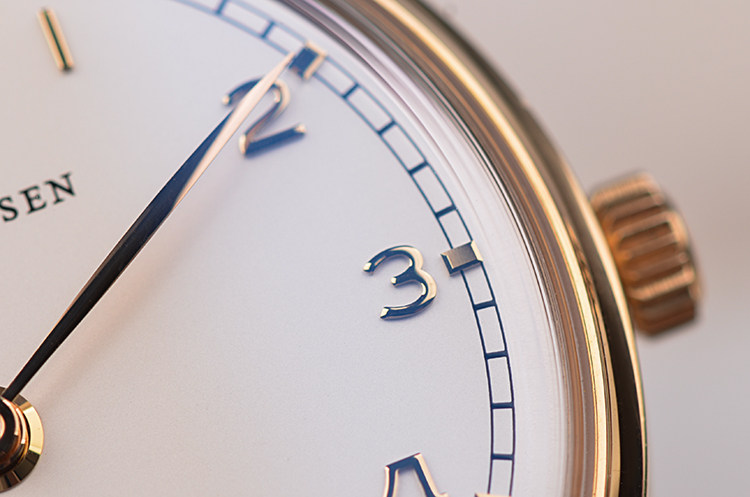表盘:立体银白色表盘,玫瑰金阿拉伯数字刻度及指针