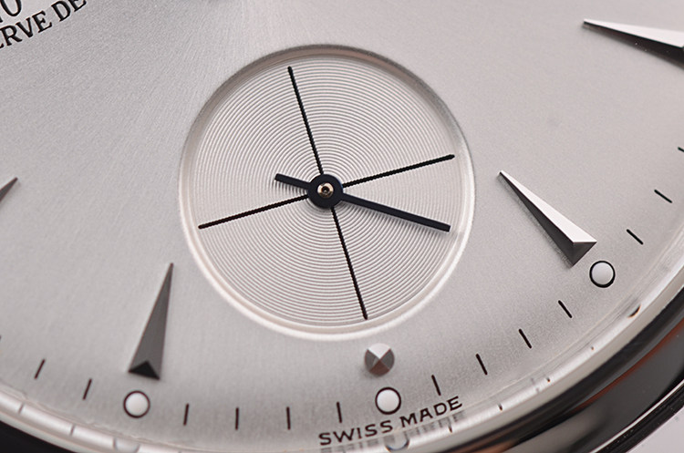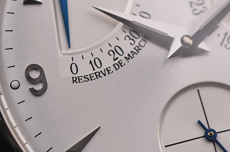 表盘:立体银白色表盘,动力储备显示,指针式日历
