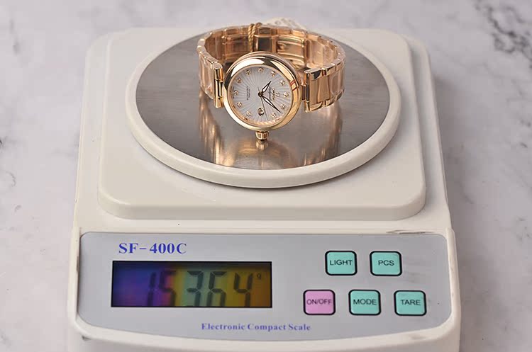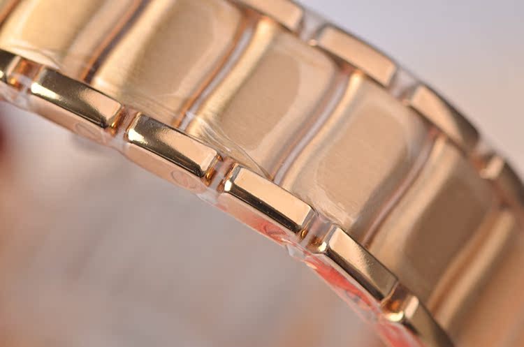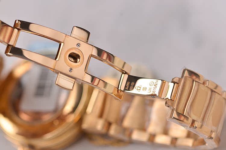 表盘:立体银白色珍珠贝母表盘,11颗钻石刻度,共计约0.12克拉