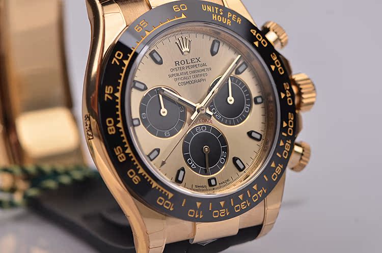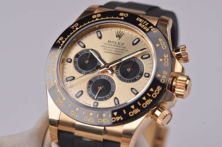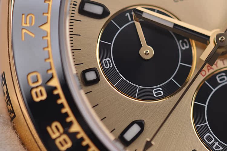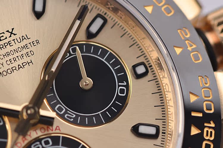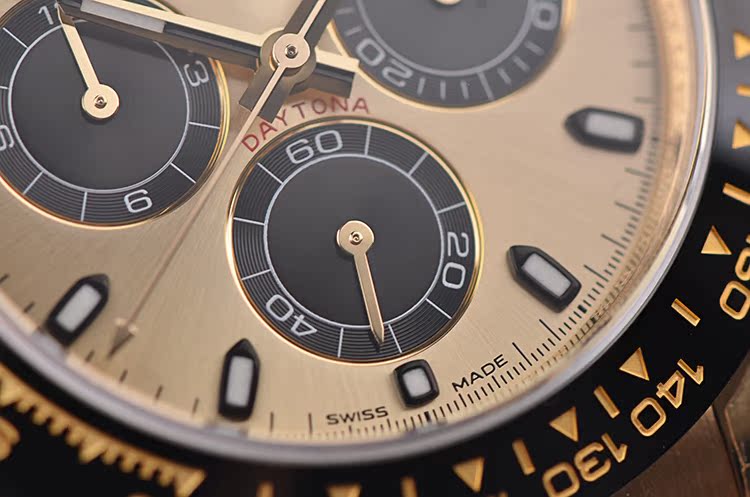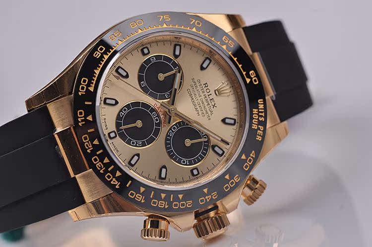 迪通拿黄金香槟及黑色面计时折叠扣胶带男表
