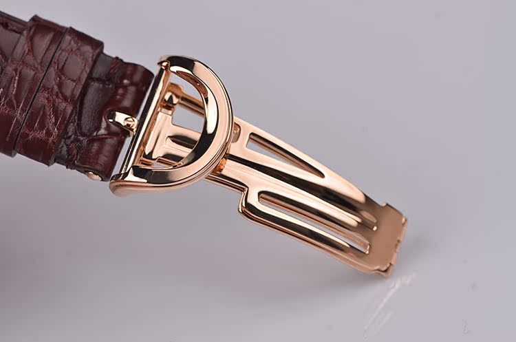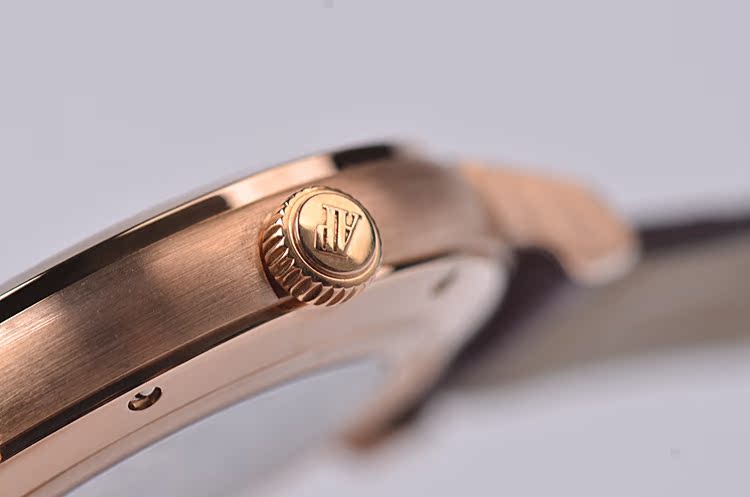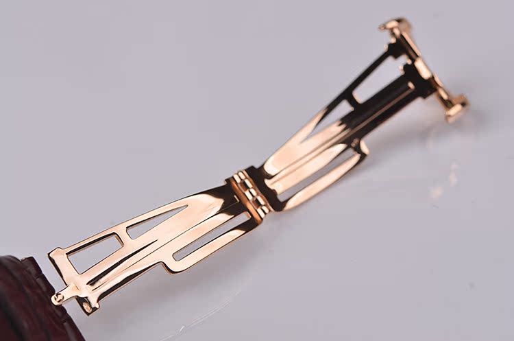 艾迪玛玫瑰金动显日历手上链折叠扣皮带腕表