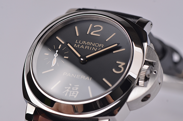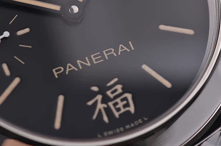 表盘:立体黑色三明治表盘,夜光刻度及指针, 6点位刻度以“福”字样代替,寓意“六福”