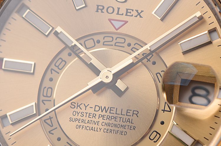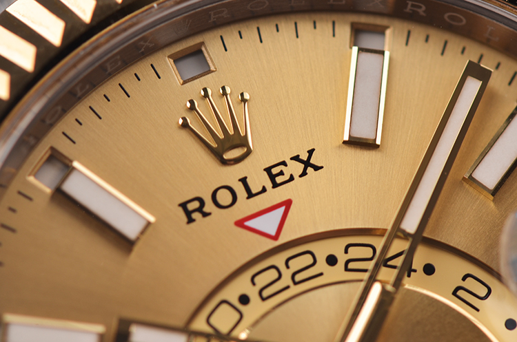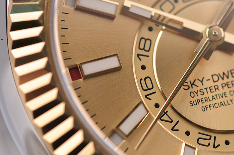 表壳:904L精钢表壳,18K黄金可旋转三角坑纹表圈