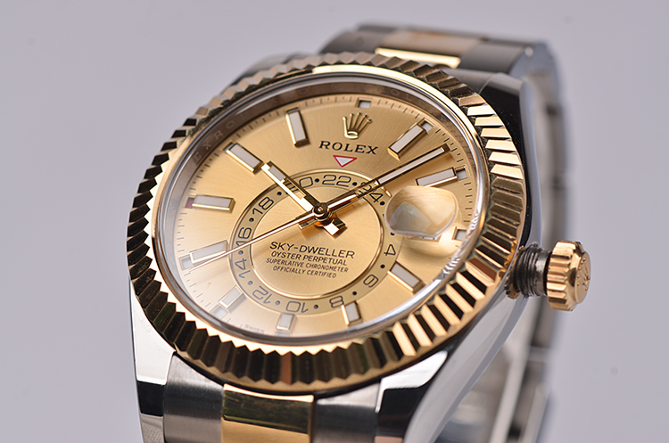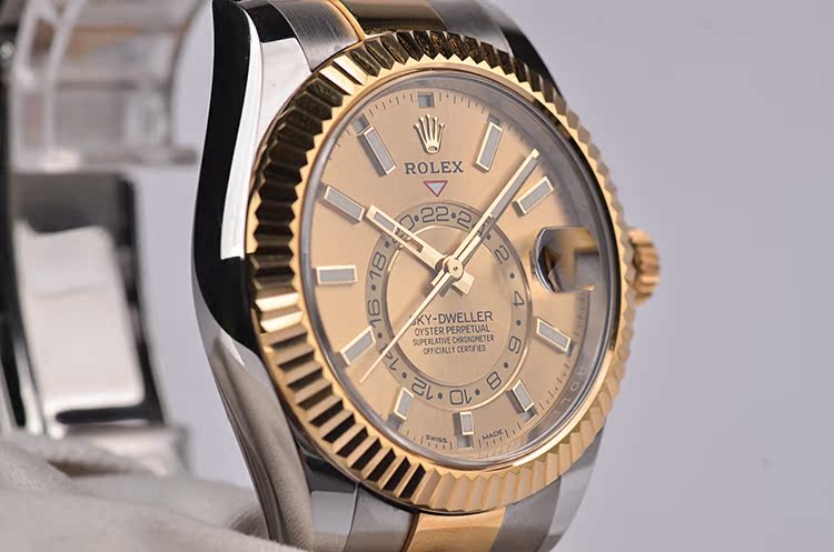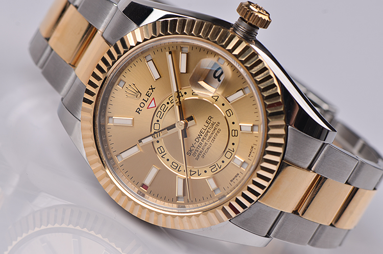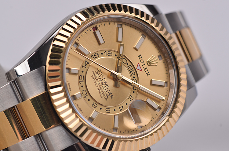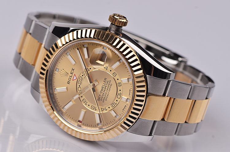 天行者黄金及钢金色面年历GMT两地时自动机械男表