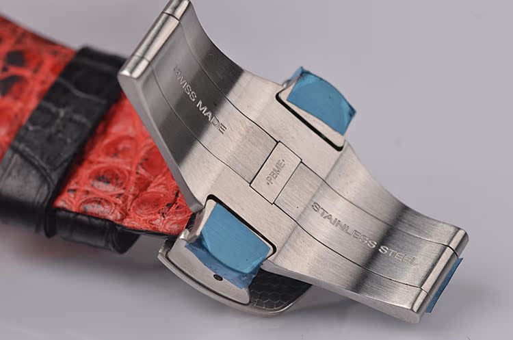 表带:原厂外黑内红鳄鱼皮表带成色较新(存放痕迹未使用过),另有一条原厂黑色橡胶表带,共计2条原装表带
