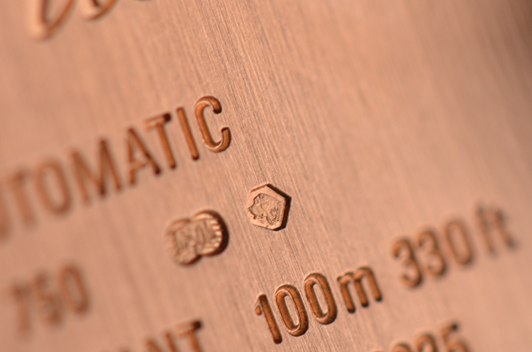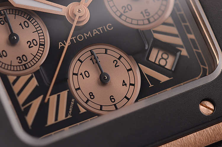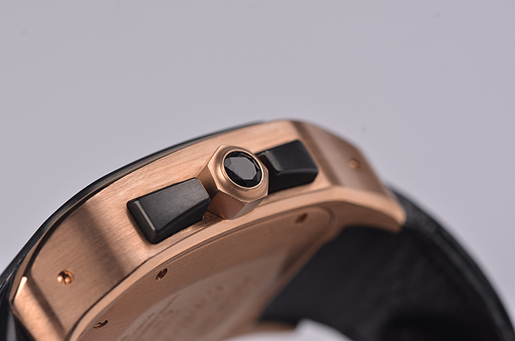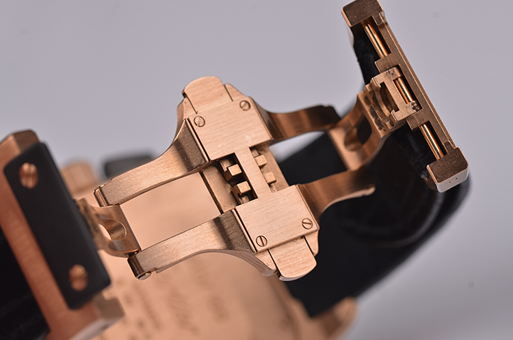 表壳:18K玫瑰金表壳,ADLC碳涂层玫瑰金表圈,18K玫瑰金表冠镶嵌一颗蓝宝石