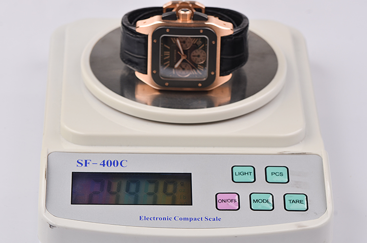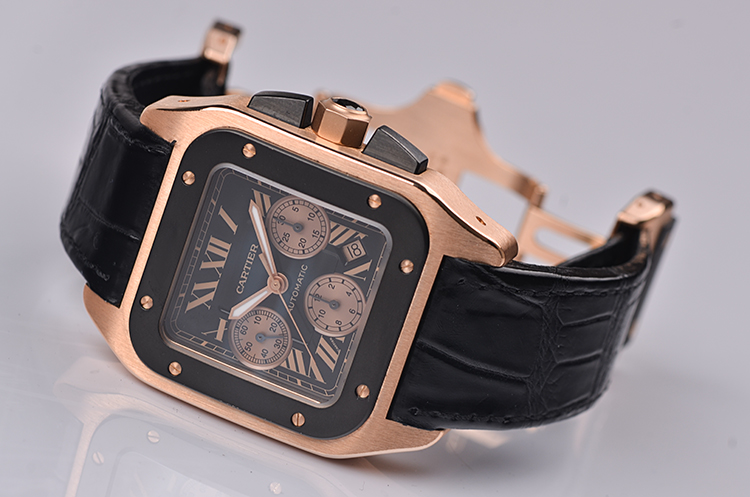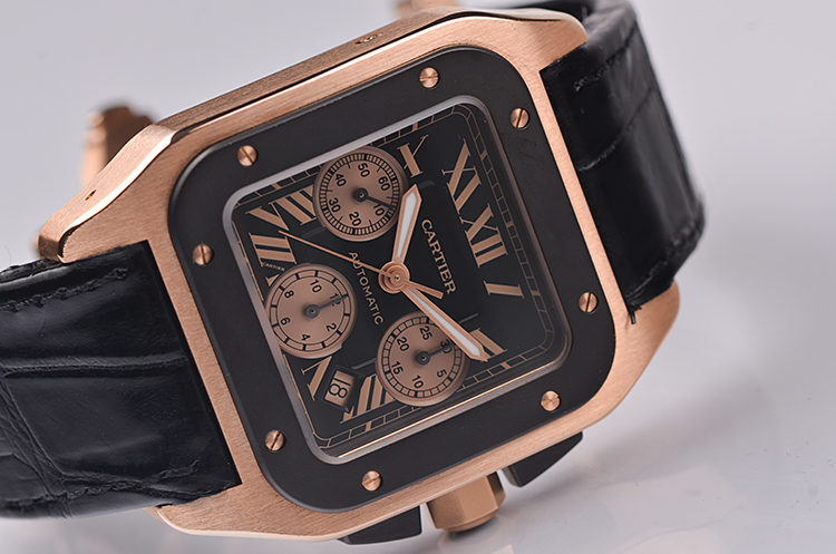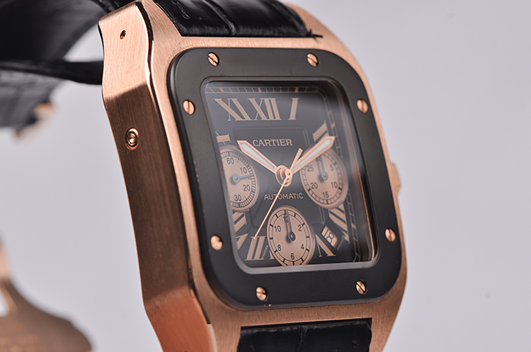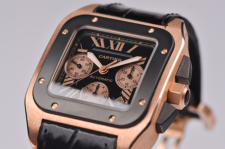 山度士100最大号玫瑰金计时日历自动机械折叠扣皮带男表