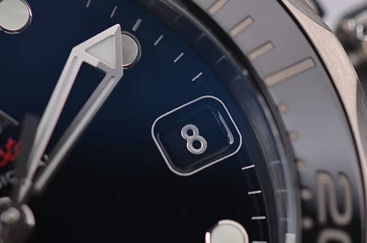 海马系列300米防水陶瓷圈黑面大三针日历自动机械钢带腕表