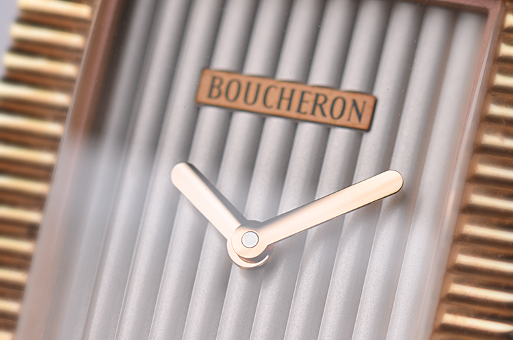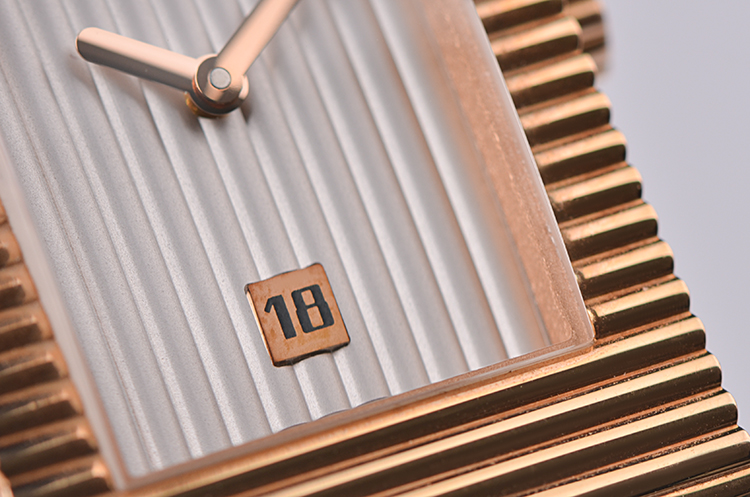 表盘: 立体银白色竖条纹表盘,玫瑰金指针