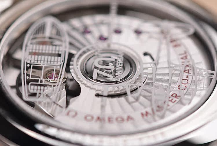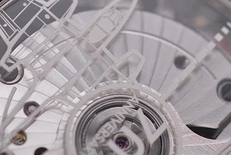 表壳:精钢表壳,限量版激光雕刻70周年标识、克里斯战艇图案、以及英国皇家空军选用的首架喷气式飞机——格洛斯特流星战斗机图案蓝宝石玻璃底盖