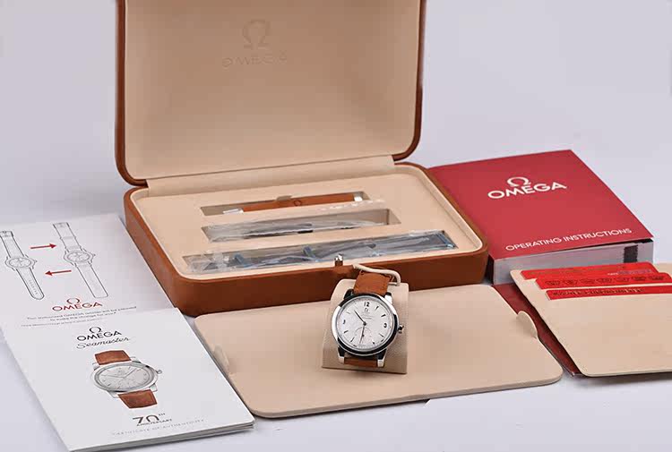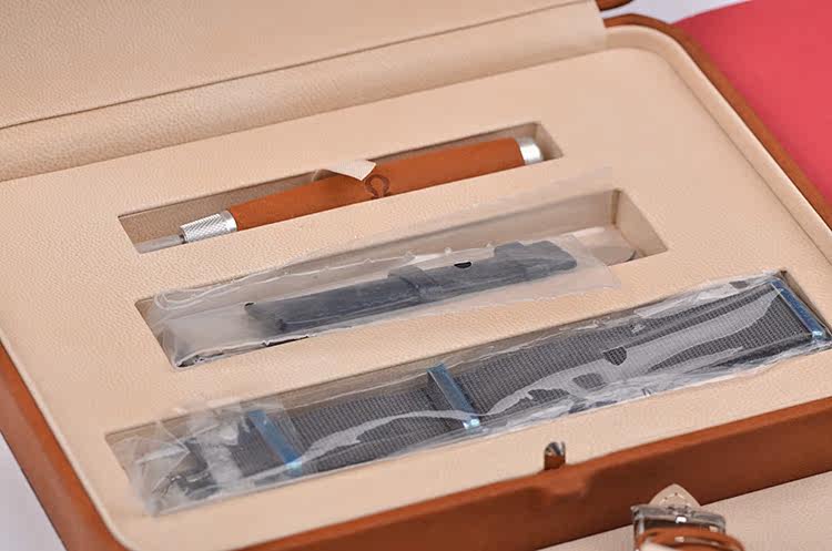 表带:全新原厂棕色牛皮表带,另有一条全新原厂灰色NATO北约JUN用表带及原装表扣,一条原厂深蓝色牛皮表带,共计3条原装表带,2个原装表扣