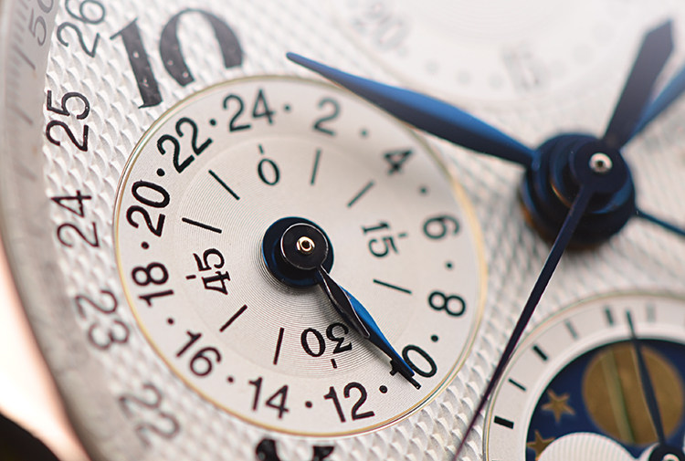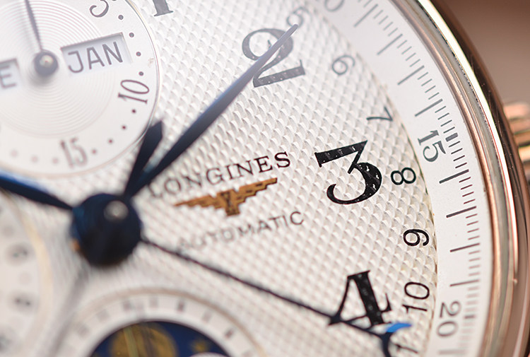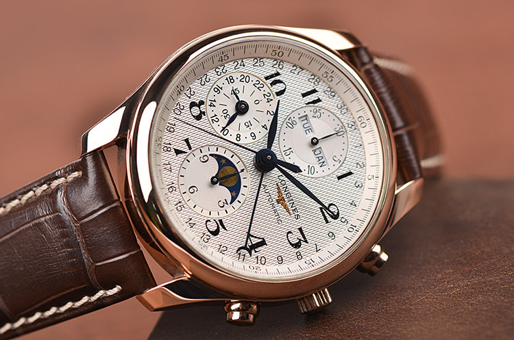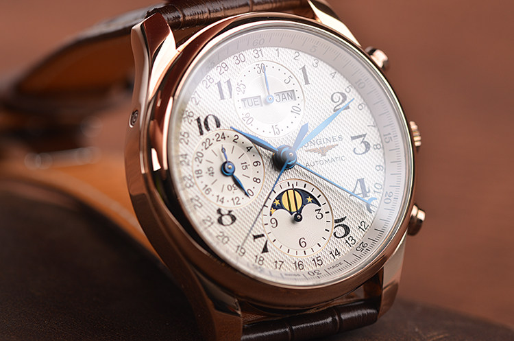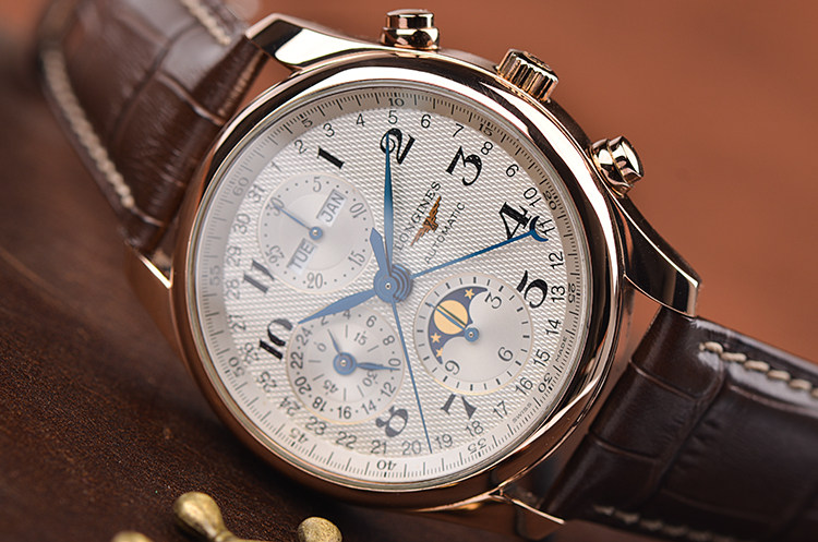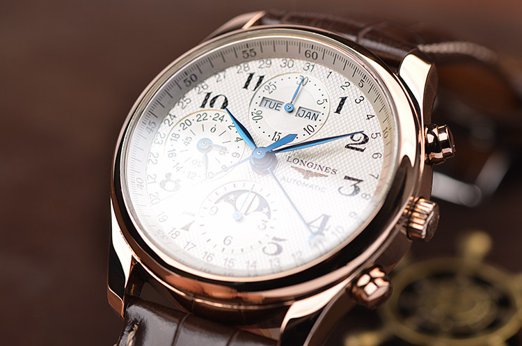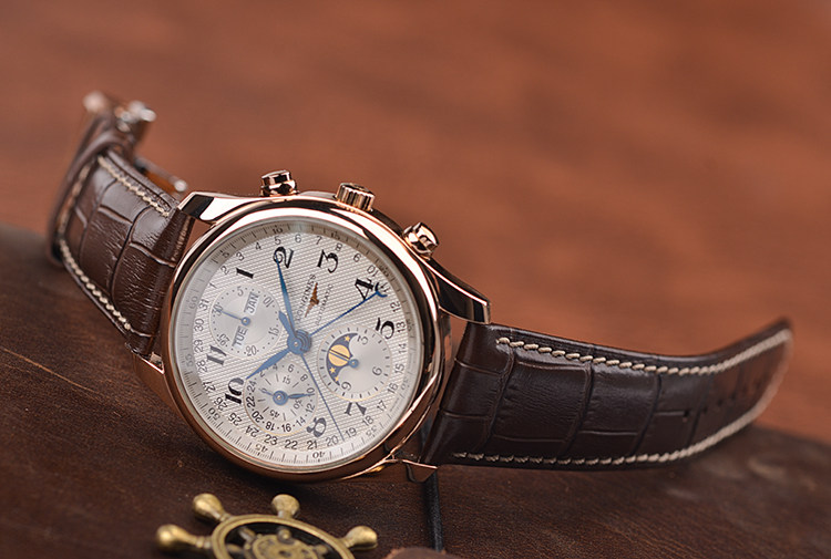 名匠系列玫瑰金全历月相计时自动机械皮带男表