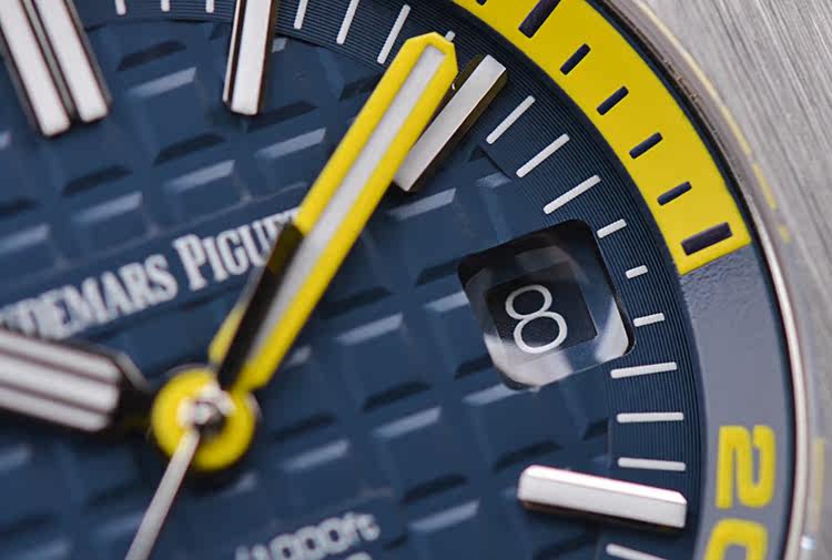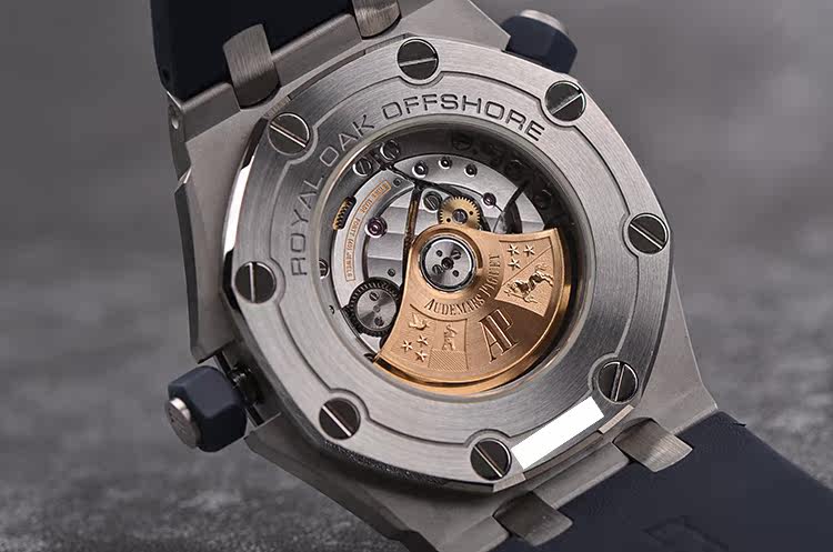 皇家橡树离岸型蓝面大三针日历自动机械胶带男表
