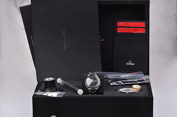 附件: 原厂大表盒,海马徽章,原厂替换生耳,原厂放大镜,表带拆卸工具,表带拆装说明书,超霸登月纪念图册,皮卡套,机芯证书,保修卡(2020年6月,可以保修至2025年6月)