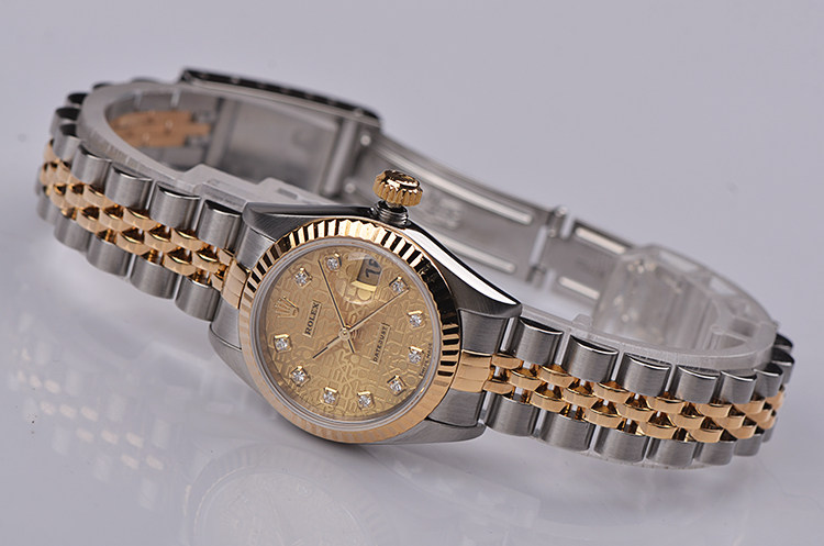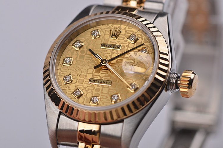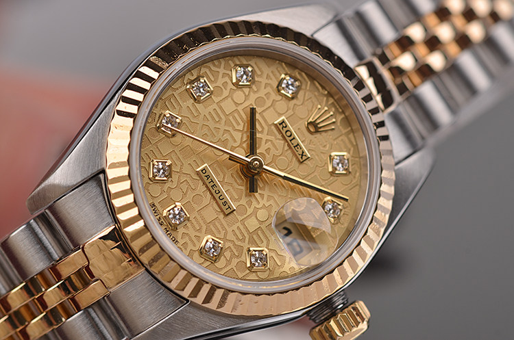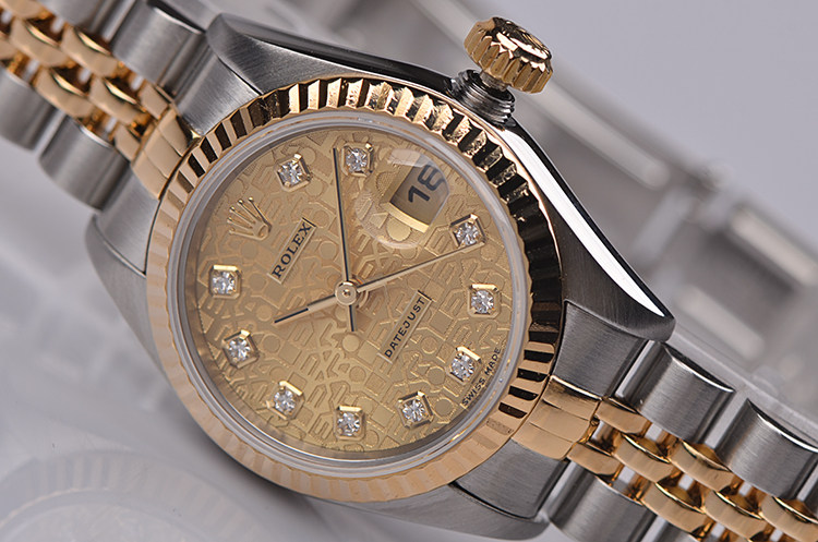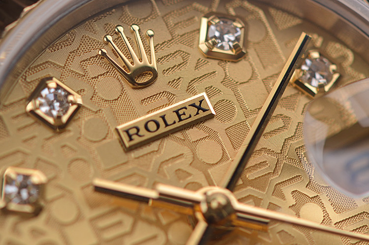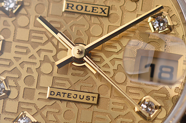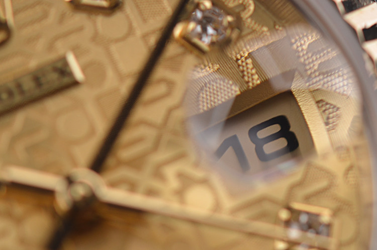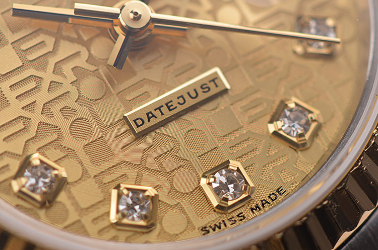 表盘:立体金色电脑面盘,黄金指针,10颗钻石时标